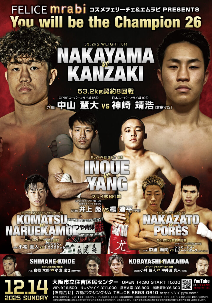 2025.12.13 610gym 本日計量でした 無事全員クリアしました! 明日は、応援よろしくお願いします! カテゴリ ジムニュース タグ boxing kids お酒 アテ キッズスクール スクール スパーリング スポーツ ダイエット チケット テスト ハロウィンパーティー フィットネス プロテスト プロボクサーテスト プロ志願 ボクササイズ ボクシング ボクシングジム ボクシングスクール ボクビクス メディア出演 中学生 会員募集中 住吉区民センター 体力強化 体験 六島 六島ボクシングジム 合同スパーリング練習会 大阪市塾代助成事業 大阪市立大学 女性会員 小学生 小学生スクール 心技体 文武両道 昇級テスト 昇級試験 無料体験実施中 習い事 興行 見学 試合 高校生 前の記事へ12/14試合 当日券販売のお知らせTOPへ戻る